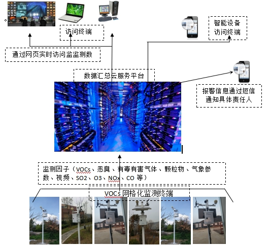 化工園區(qū)有毒有害氣體監(jiān)測預警系統(tǒng)是一套集成了物聯(lián)網(wǎng)技術(shù)、大數(shù)據(jù)與云服務、自動控制、GIS技術(shù)的綜合性、高度集成的系統(tǒng)。由大氣環(huán)境質(zhì)量監(jiān)測終端、有毒有害氣體監(jiān)測終端、數(shù)據(jù)匯總云服務平臺、訪問終端等設(shè)備組成。